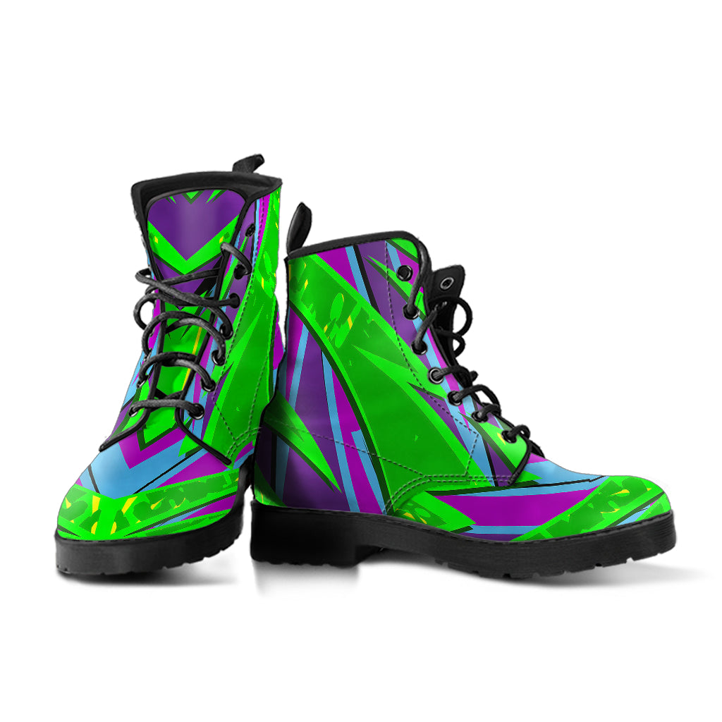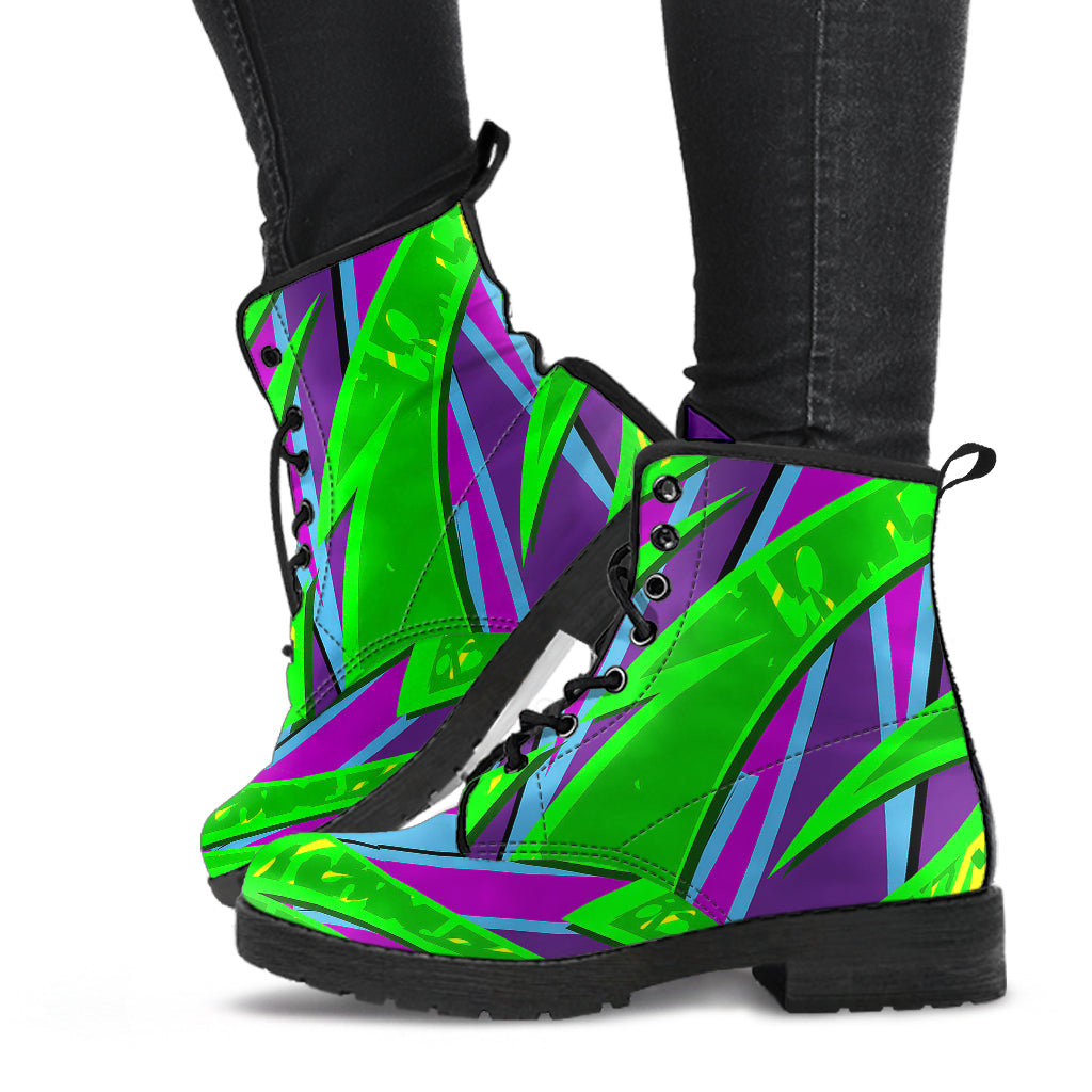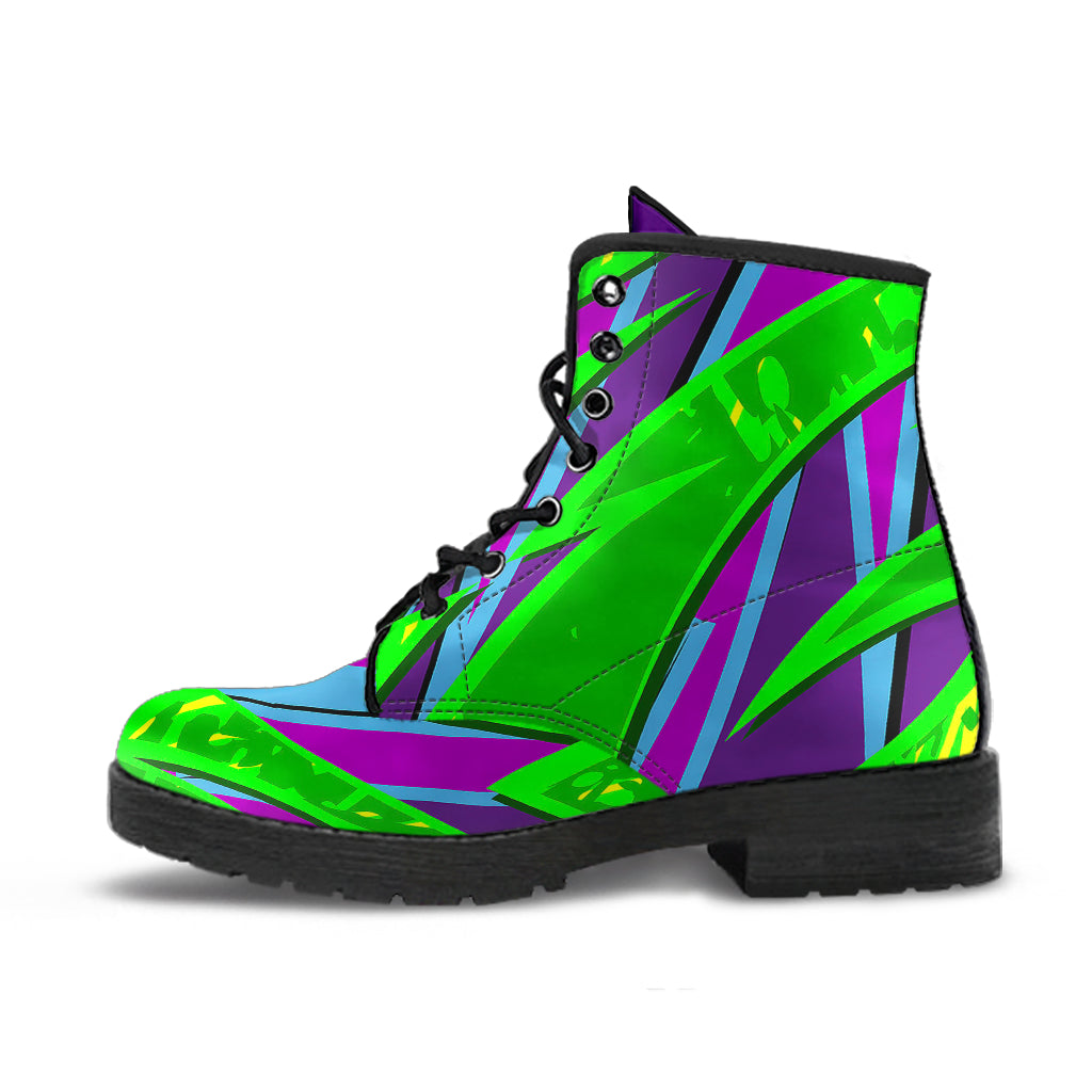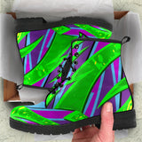 Racing Style Neon Green & Purple Vibes Leather Boots