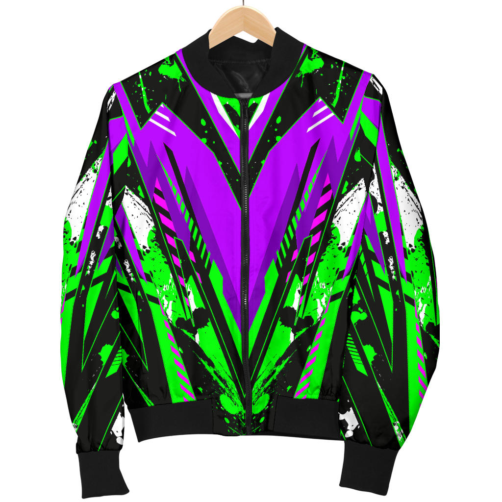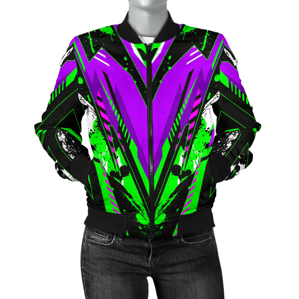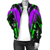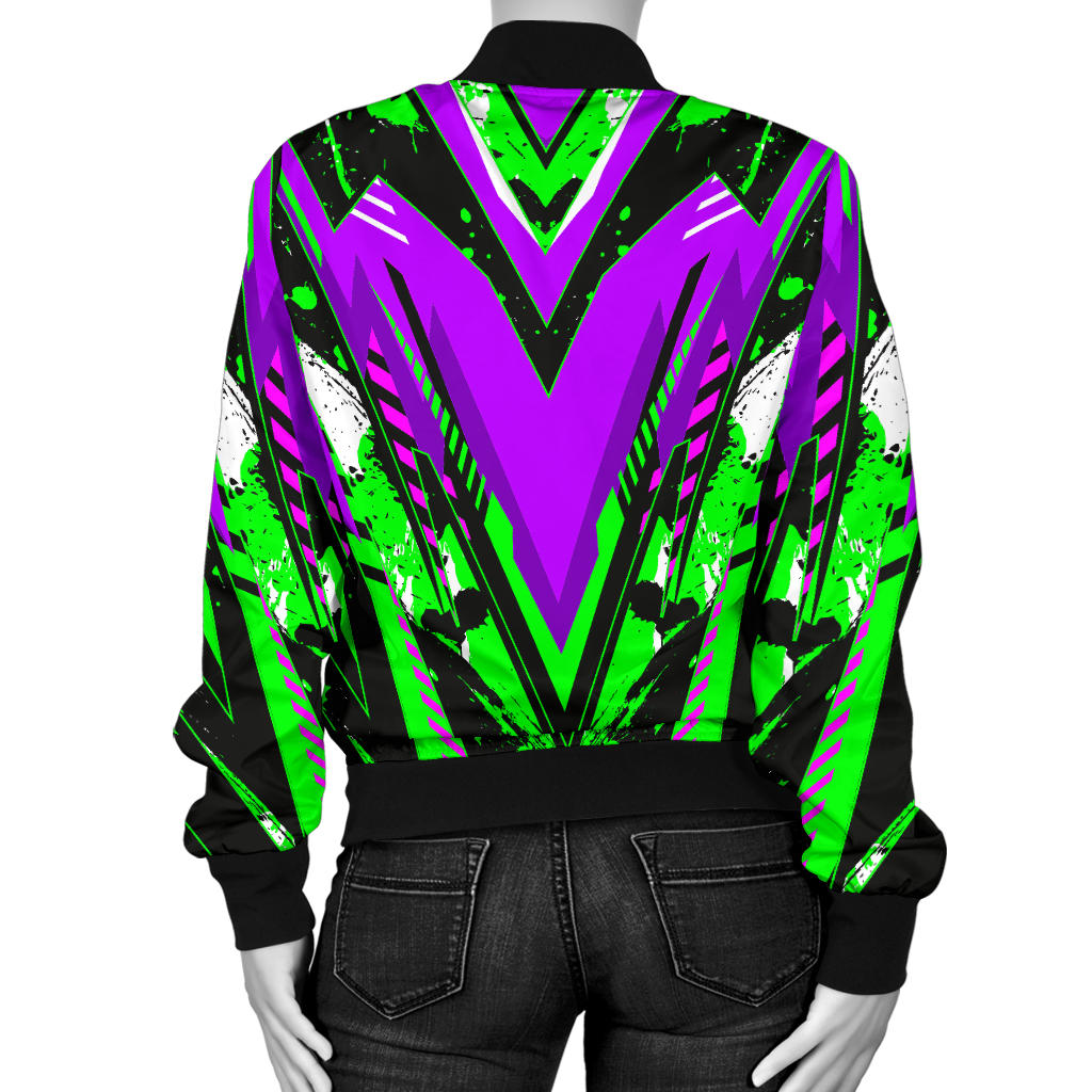 Racing Style Neon Green Splash & Violet Vibes Women's Bomber Jacket