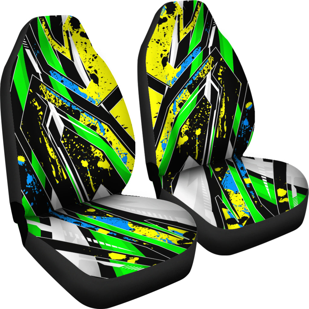 Racing Style Neon Green Splash & Yellow Vibes Car Seat Covers