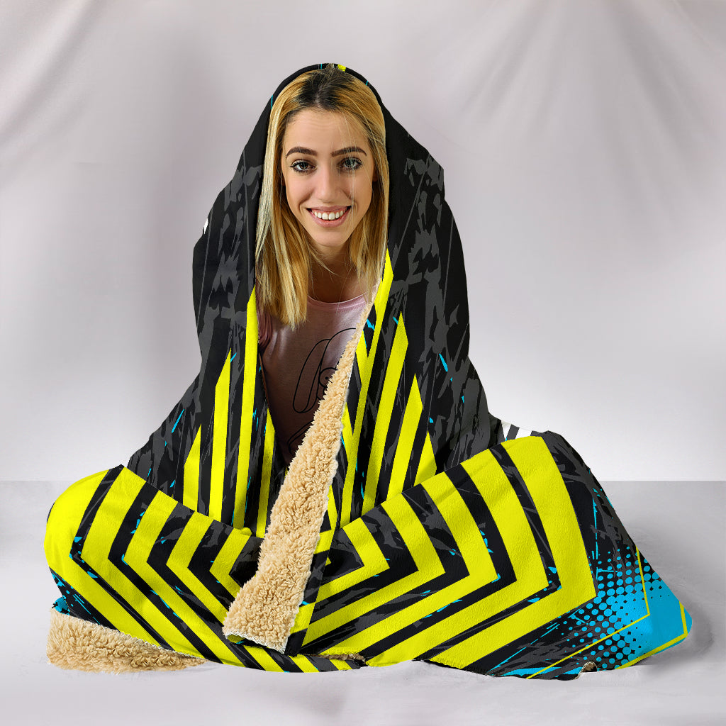 Racing Style Ocean Blue & Yellow Stripes Vibes Hooded Blanket