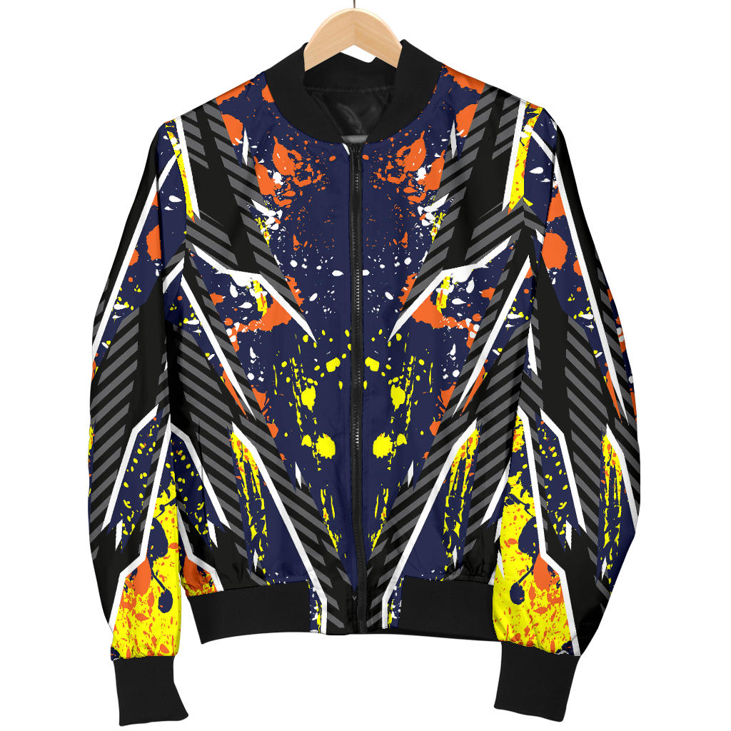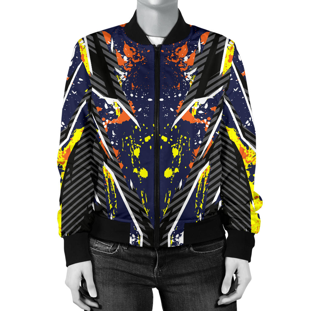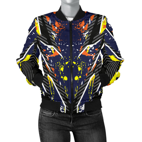 Racing Style Orange Splash & Dark Blue Vibes Women's Bomber Jacket