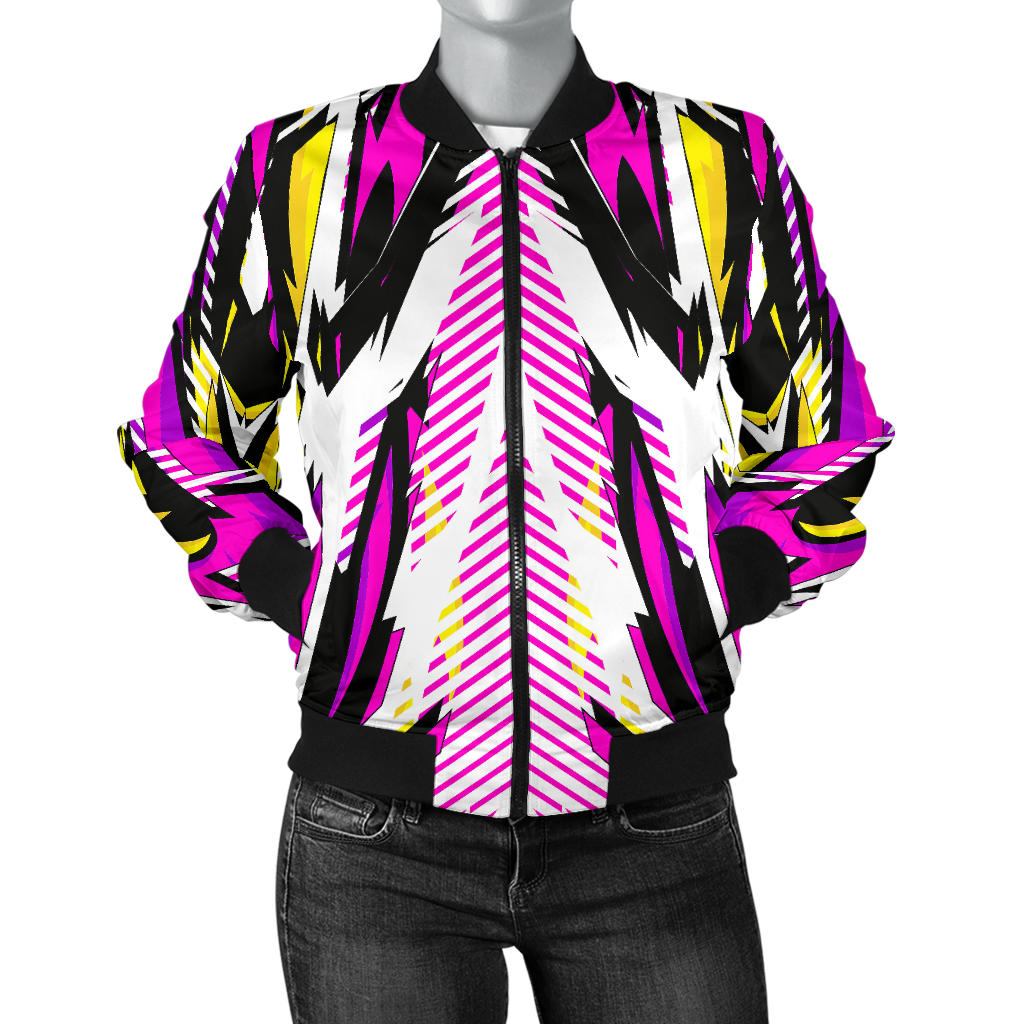 Racing Style Pink & White Colorful Vibe Women's Bomber Jacket