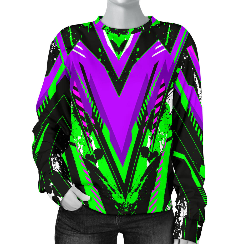 Racing Style Purple & Neon Green Splash Vibe Women's Sweater