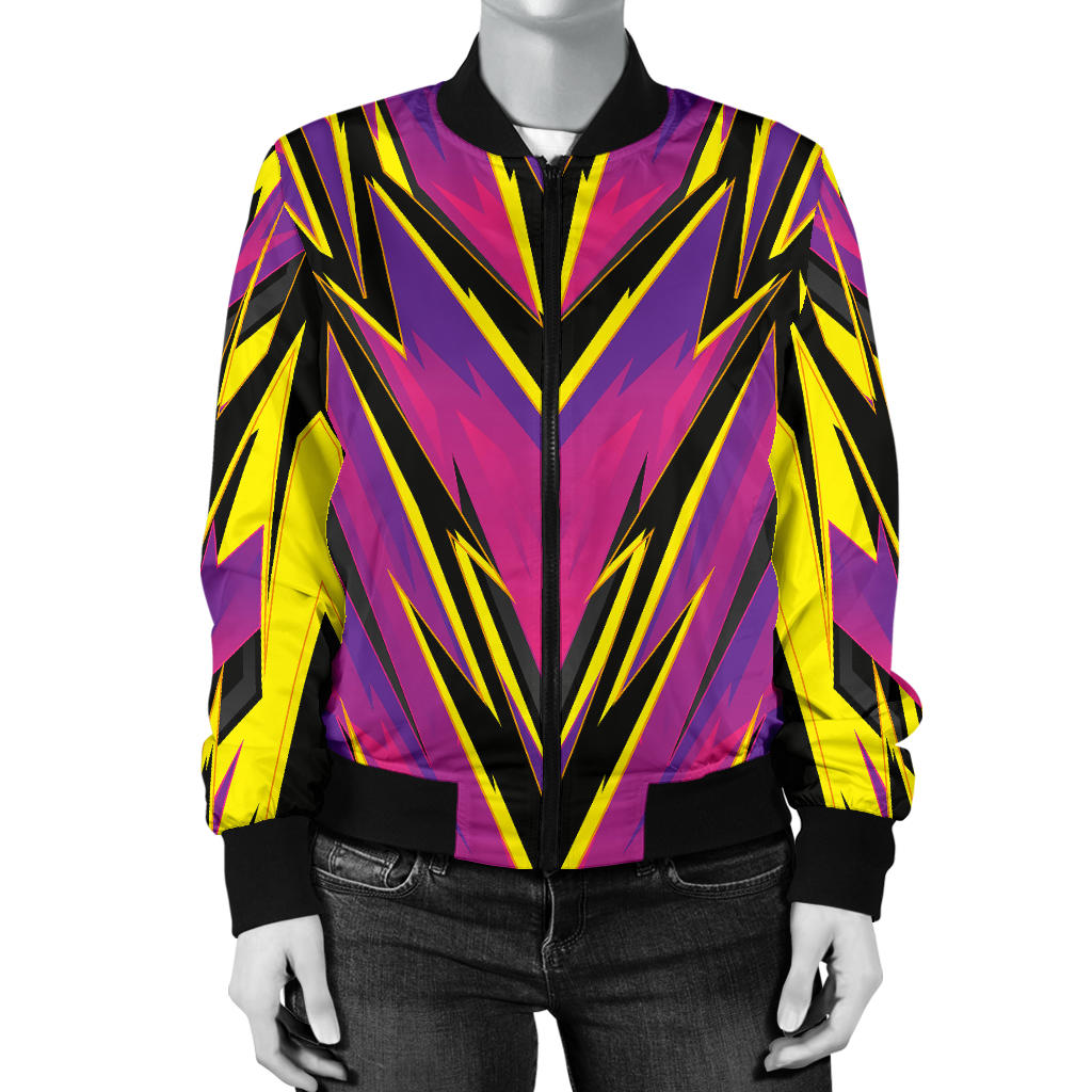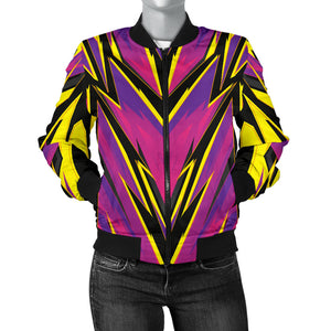 Racing Style Purple & Yellow Colorful Vibe Women's Bomber Jacket
