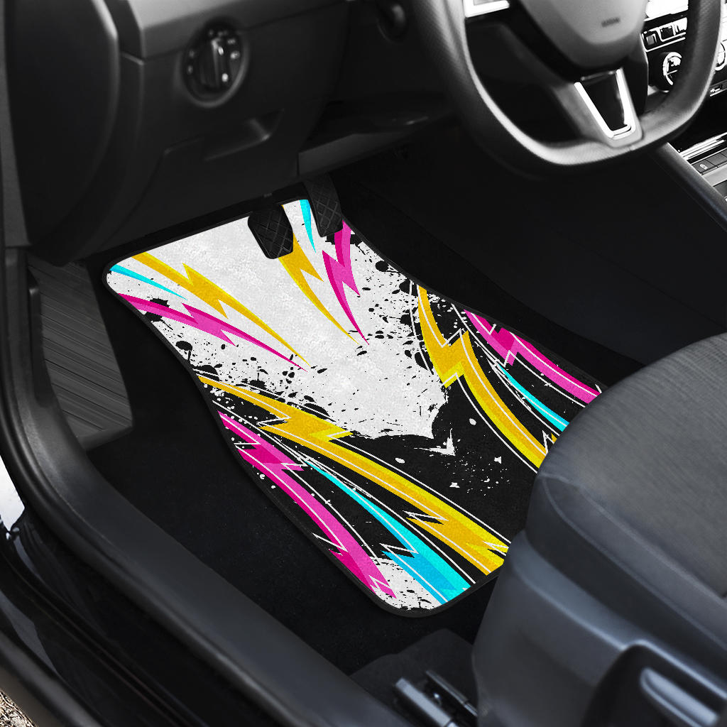Racing Style White & Yellow Colorful Vibes Front Car Mats