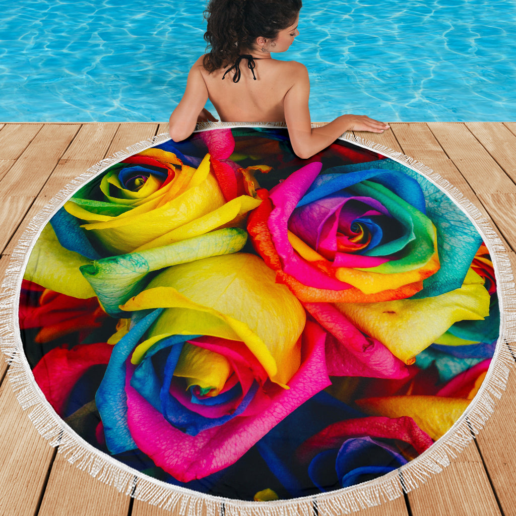 Rainbow Rose Beach Blanket