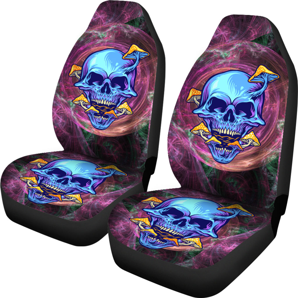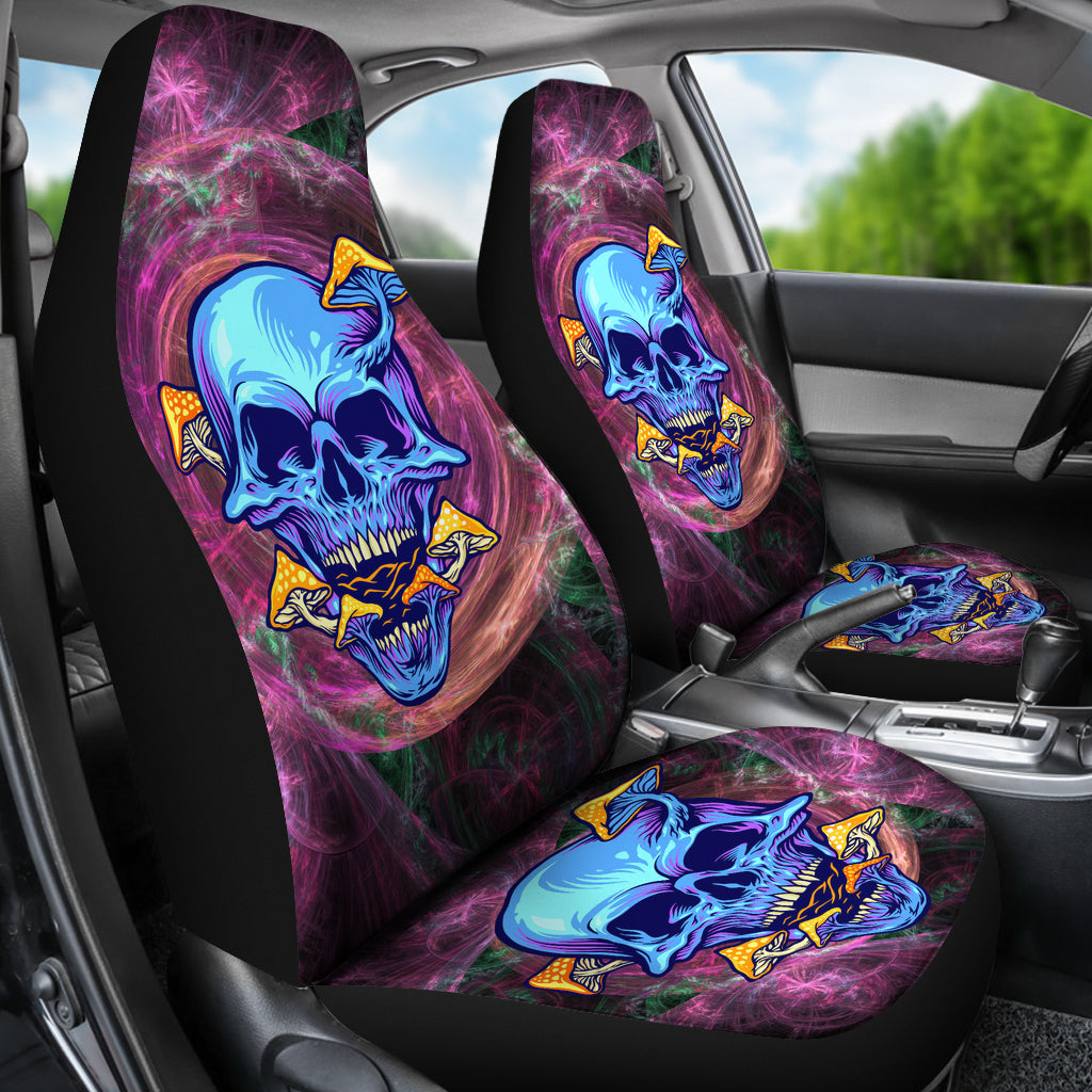 Rave Psychedelic Design With Dark Blue Skull & Mushrooms Car Seat Cover