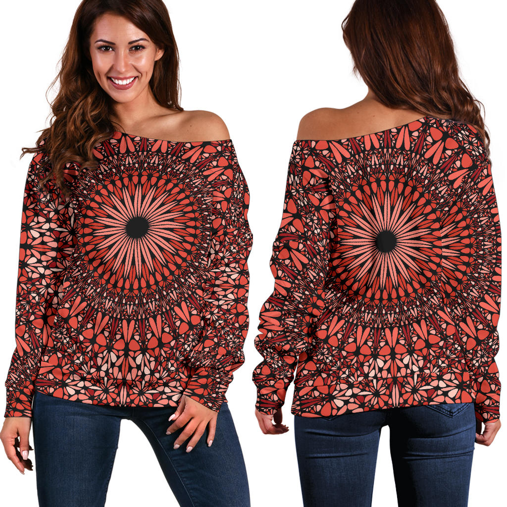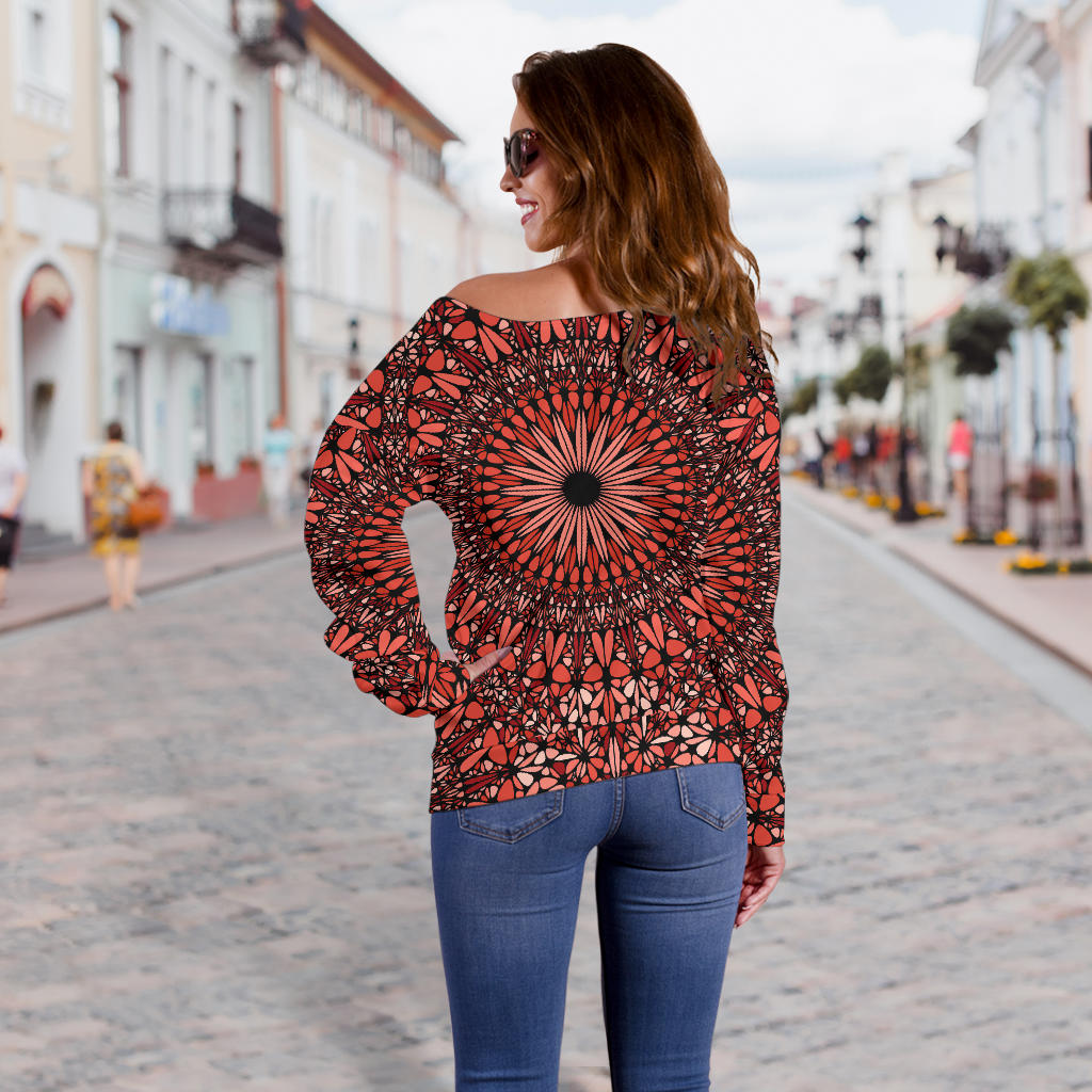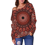 Red Spiritual Mandala Women's Off Shoulder Sweater