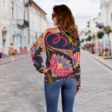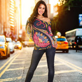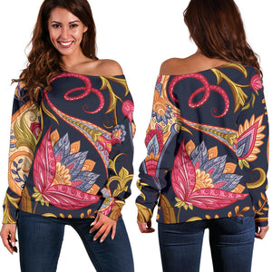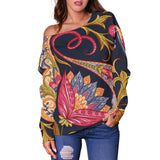 Royal Blue Paisley Women's Off Shoulder Sweater