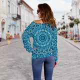 Sky Blue Mandala Women's Off Shoulder Sweater