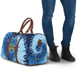 Special Navy Light Blue Tie Dye Design - Golden Lion Head Style - Travel Bag