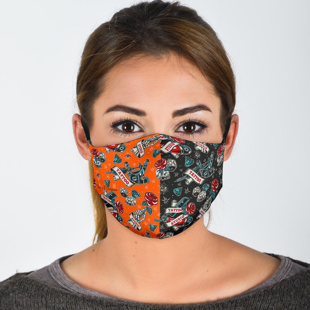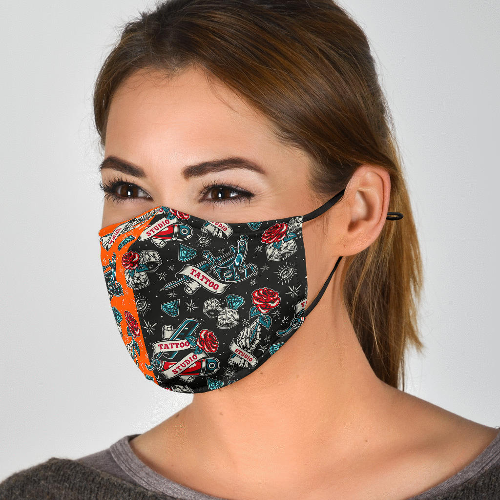 Tattoo Studio Design in Black & Orange Protection Face Mask