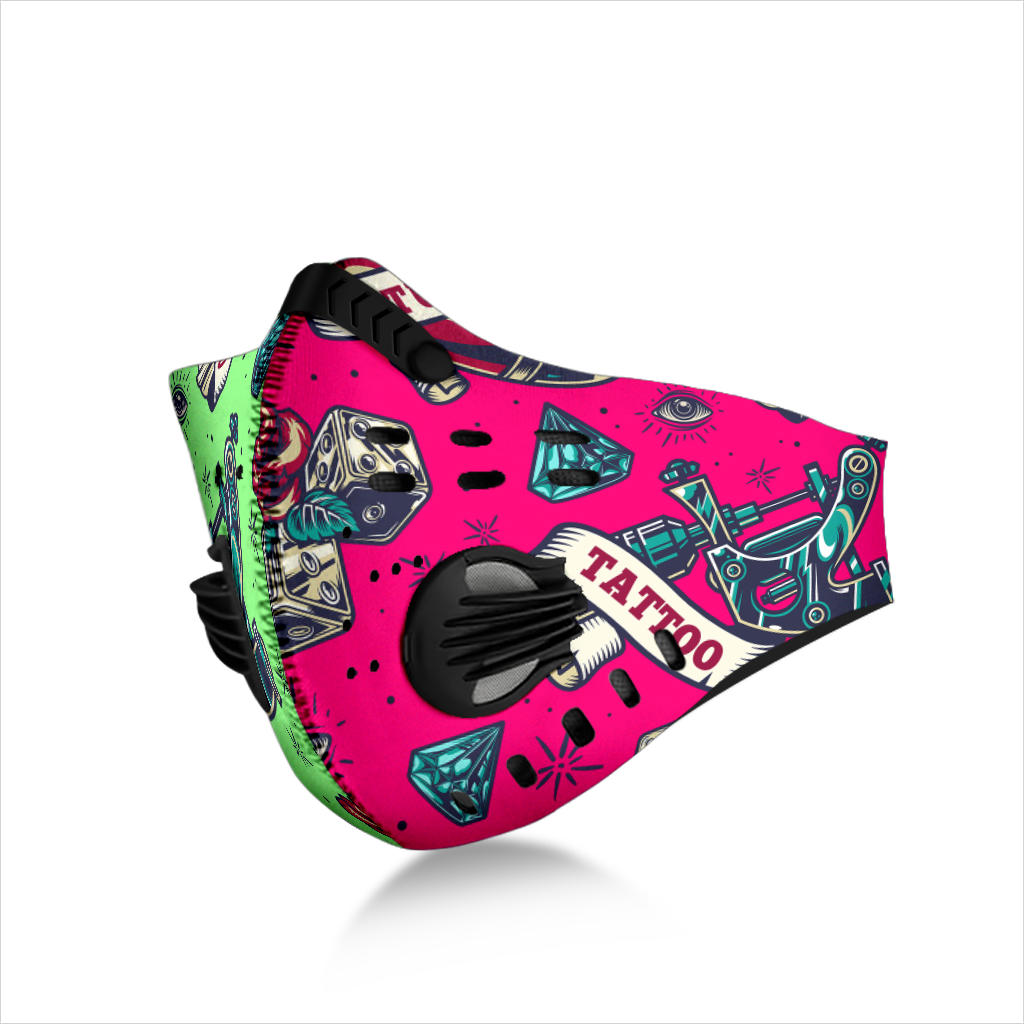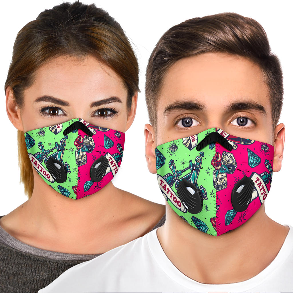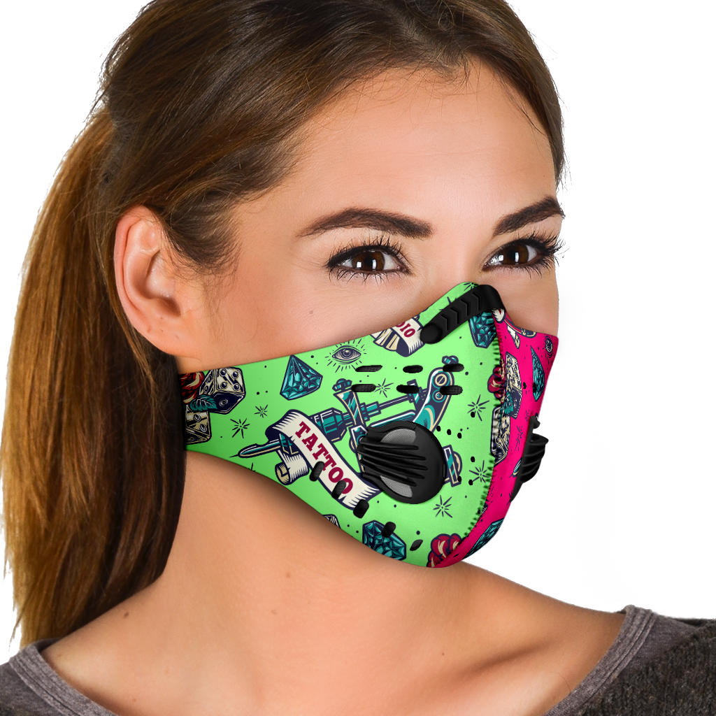 Tattoo Studio Design In Lovely Green & Pink Vibes Premium Protection Face Mask