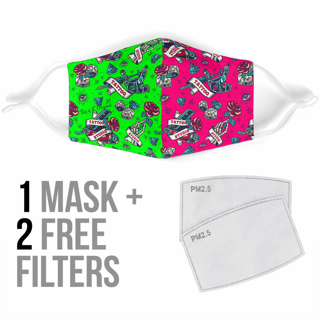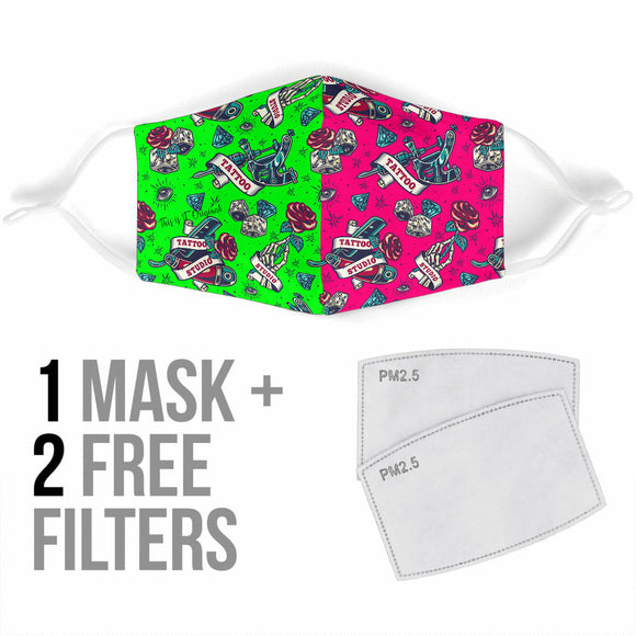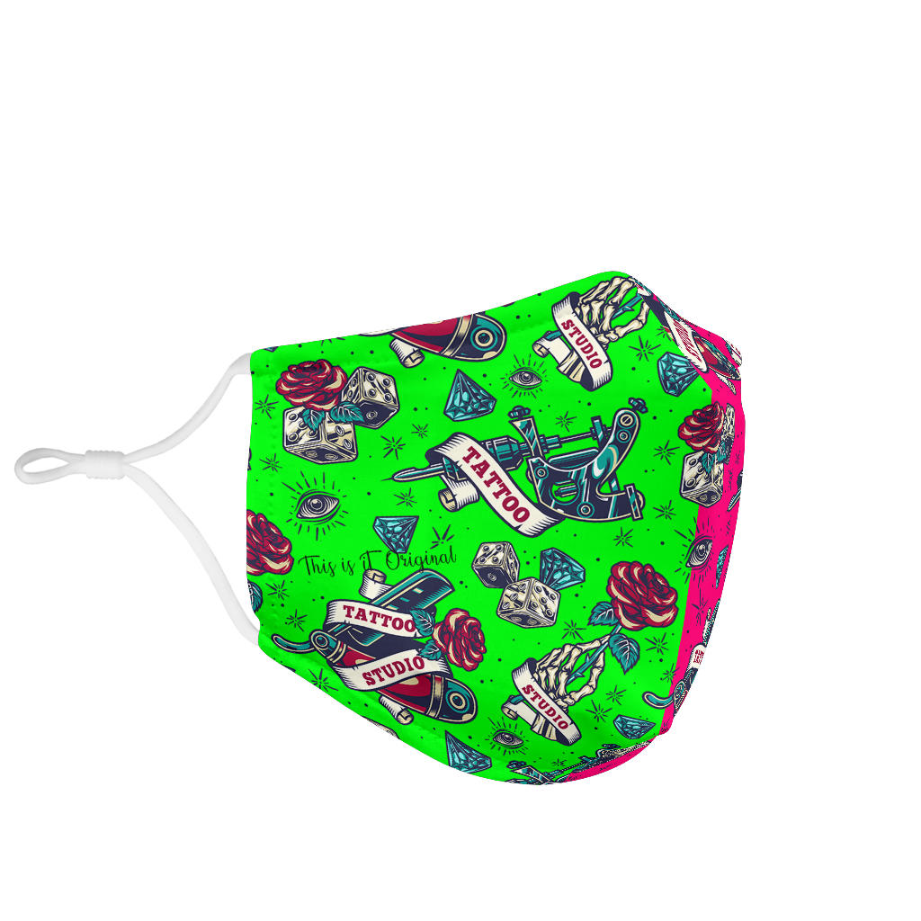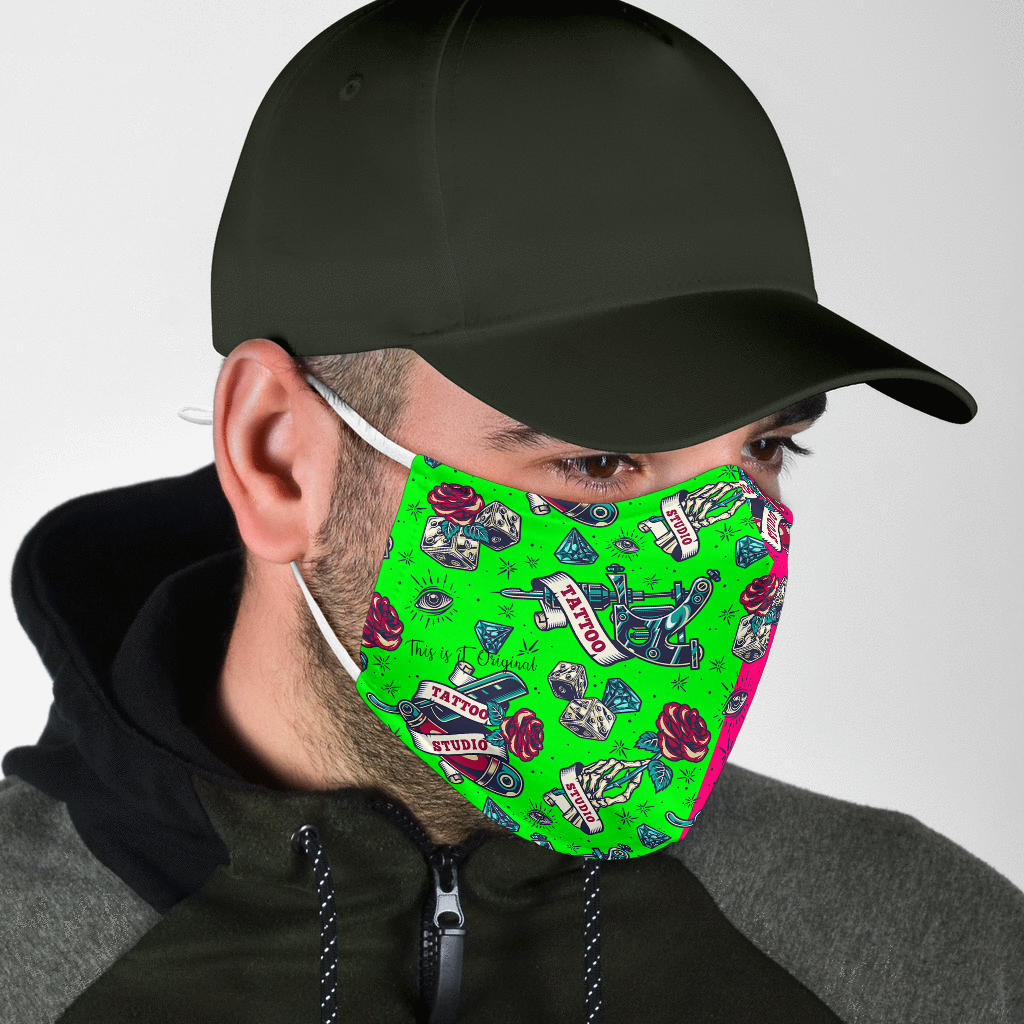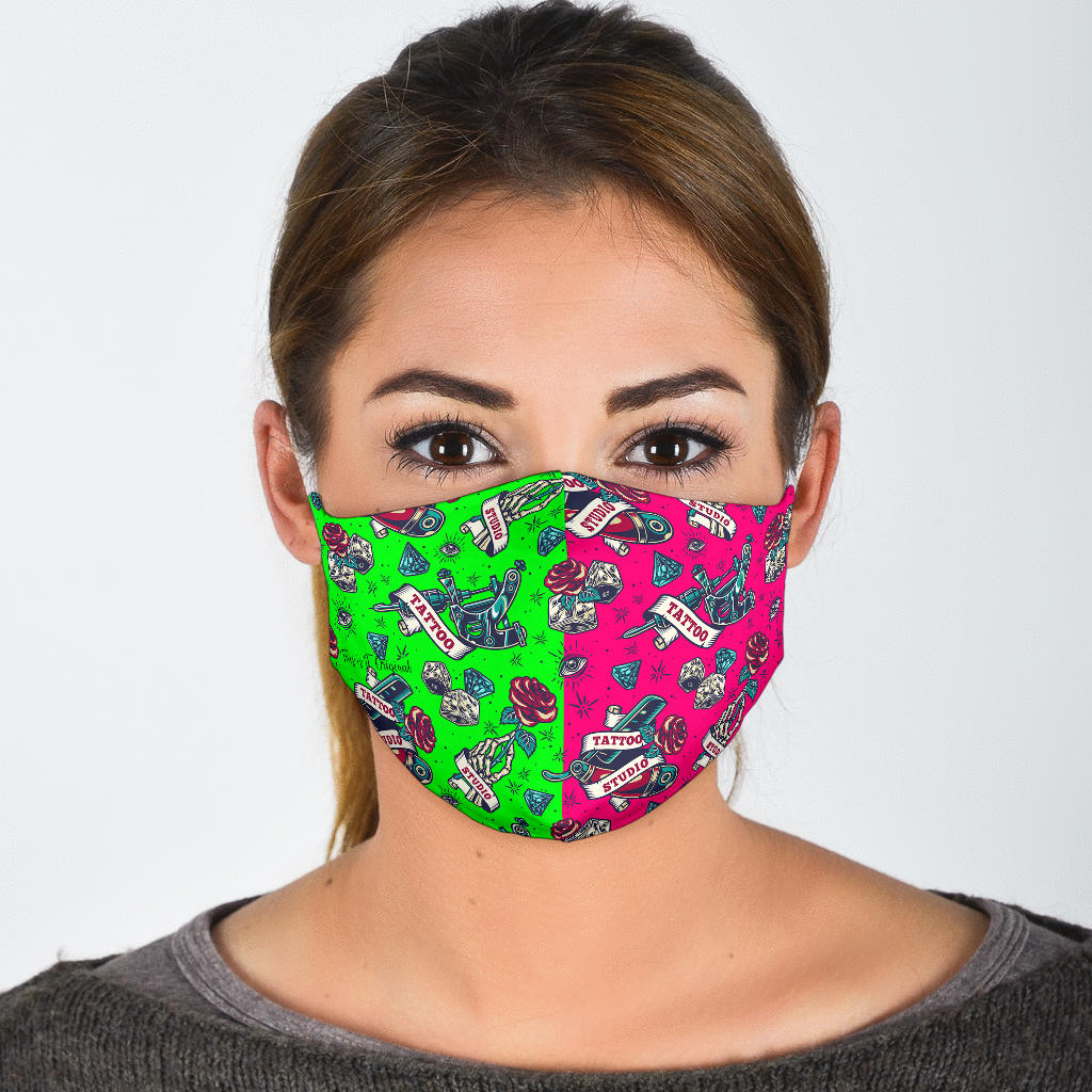 Tattoo Studio Design in Neon Green & Pink Protection Face Mask