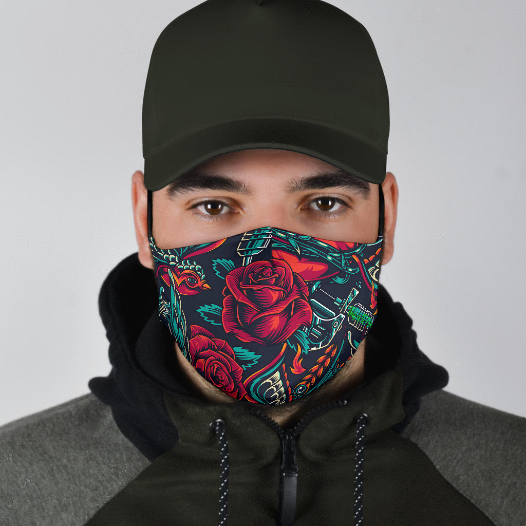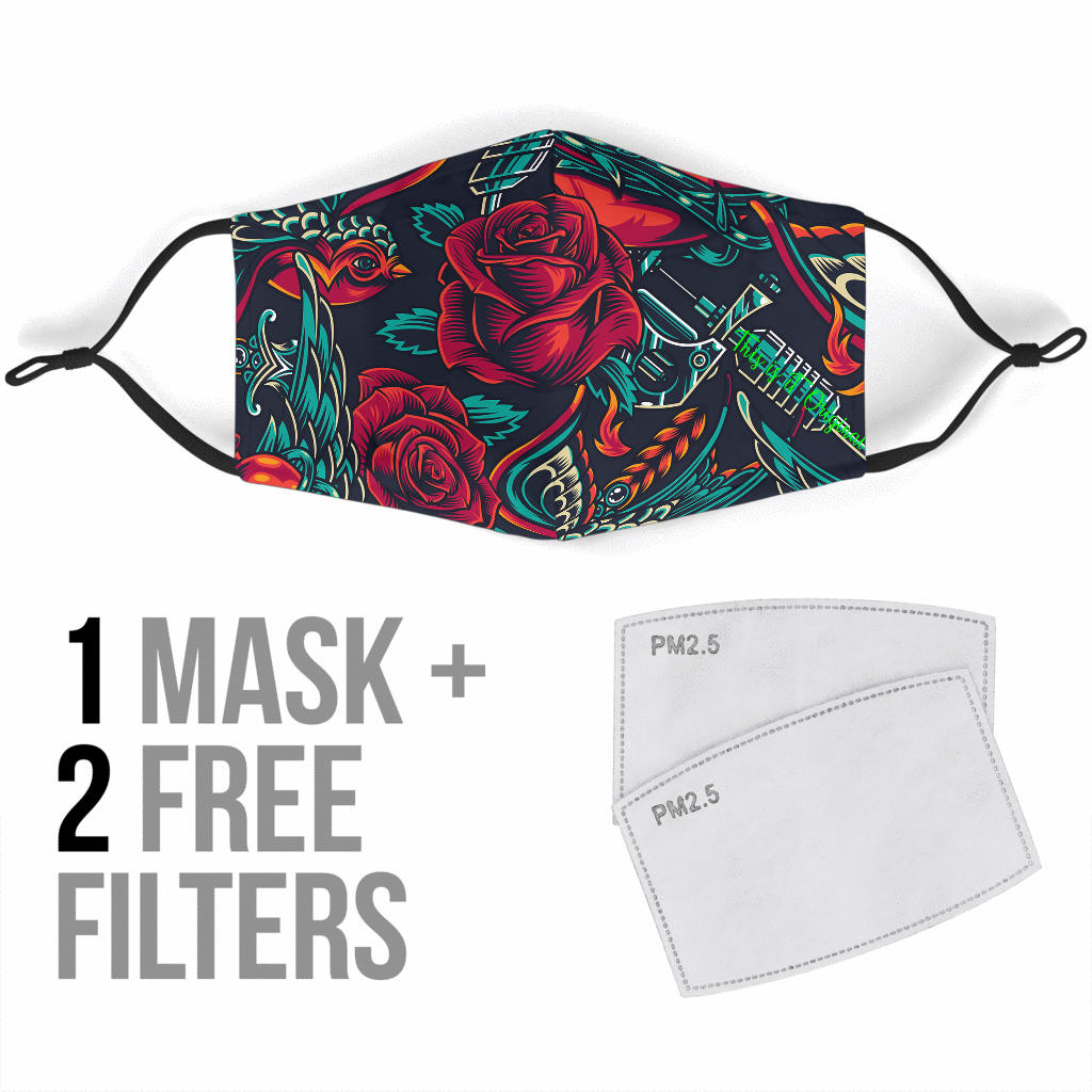 Tattoo With Roses Is Passion Two Protection Face Mask