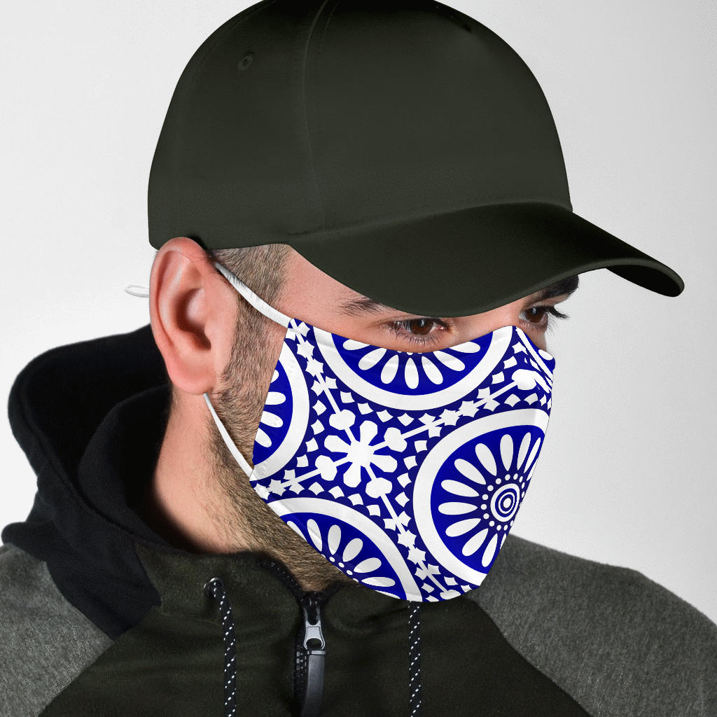 Traditional Blue & White Mandala Design Four Protection Face Mask