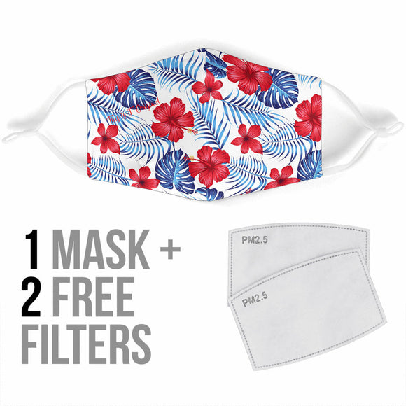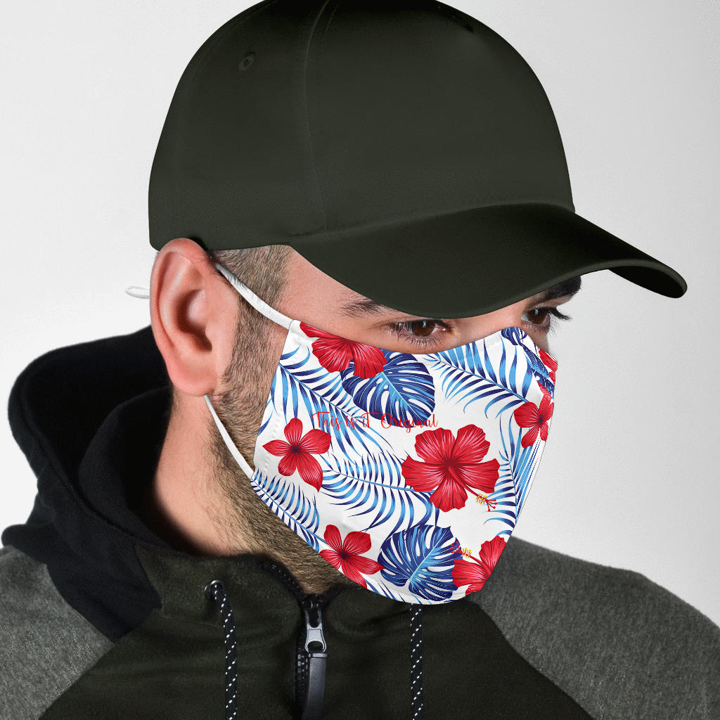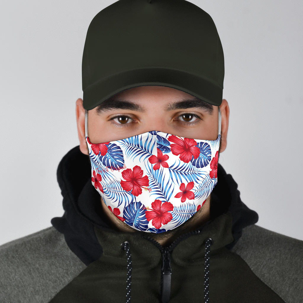 Tropical Red Flowers & Blue Leafs Design Protection Face Mask