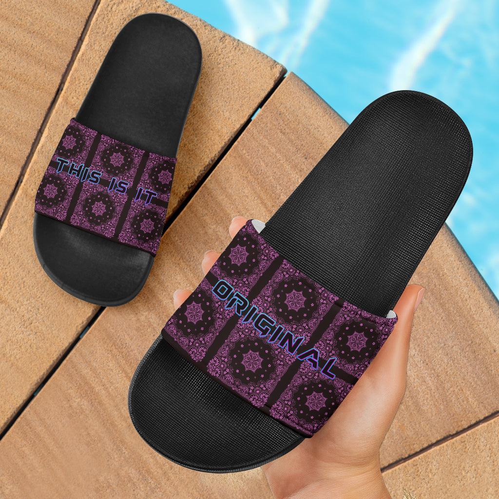 Ultra Violet and Black Paisley Pattern Design Slide Sandals