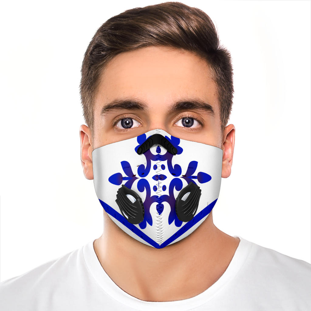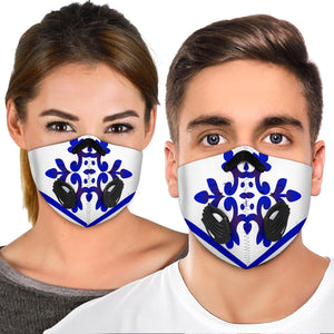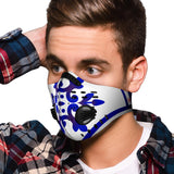 White & Blue Traditional Mandala Design Three Premium Protection Face Mask